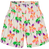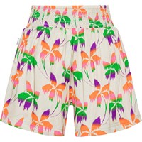 Hellkhakigrüne Shorts mit mehrfarbigem Palmenprint. Die Shorts fallen aus weicher Viskose schön und haben einen breiten Taillenteil mit Smok-Effekt, der das Anziehen erleichtert und ein angenehmes Tragegefühl ermöglicht.