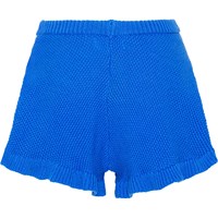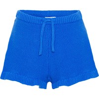 Blaue gehäkelte Baumwollshorts. Die Shorts haben eine lockere Passform, einen elastischen Bund mit Schnürung, die ein einfaches Anziehen und ein angenehmes Tragegefühl ermöglichen. Der Rand der Shorts ist mit einem Rüscheneffekt gehäkelt, was ihnen ein schönes Finish verleiht. Kombinieren Sie die Shorts mit dem Oberteil in passender Farbe und Material und erhalten Sie einen coolen Retro-Look.