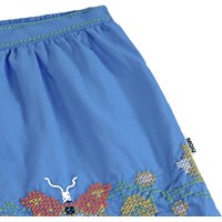Blaue Shorts aus weicher Baumwolle mit feinen Stickereidetails an den Beinen. Die Shorts haben eine lockere Passform und einen elastischen Bund am Rücken für zusätzlichen Komfort und Flexibilität. Sie sind perfekt für warme Sommertage.