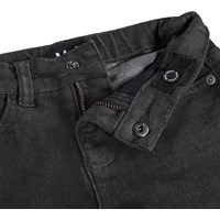 Klassische schwarze Jeansshorts mit einem coolen, gewaschenen Look. Das Modell hat fünf Taschen, Gürtelschlaufen und einen verstellbaren elastischen Bund für eine optimale Passform. Die kleinsten Größen (92-134) haben einen praktischen Druckknopf, während die Größen 140-176 mit einem klassischen Jeansknopf ausgestattet sind.