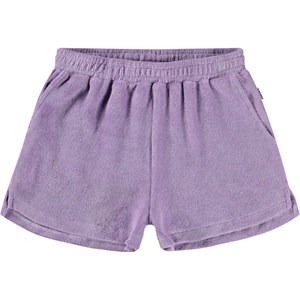 Lila Shorts aus weichem Baumwoll-Frottee. Die Shorts haben eine lockere Passform, Seitentaschen und einen breiten elastischen Bund, der sie leicht anzuziehen und angenehm zu tragen macht. Baumwoll-Frottee ist angenehm zu tragen und trocknet schnell nach dem Schwimmen.