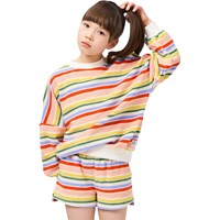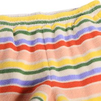 Multistreifige Shorts aus weichem, biologischem Baumwollfrottee. Die Shorts haben einen elastischen Bund, Seitentaschen und kleine Schlitze an den Seiten für zusätzliche Bewegungsfreiheit. Der leichte und lockere Schnitt macht sie ideal für die aktiven Tage des Sommers.
