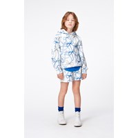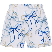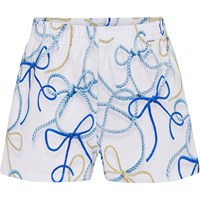 Weiße Shorts aus Öko-Baumwolle. Die Shorts haben eine lockere Passform und einen elastischen Bund, der das Anziehen und den Tragekomfort erleichtert. Die Shorts haben einen Allover-Print aus Schiffstauen in Blautönen.