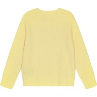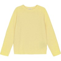 Gelber Pullover aus weicher Wollmischung mit Rundhalsausschnitt und gerippten Abschlüssen an den Ärmeln, am Hals und an der Taille. Der Pullover ist warm und hat eine normale Passform mit Platz für ein Langarm-T-Shirt darunter.