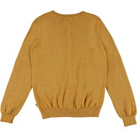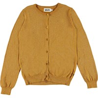 Georgina ist ein goldener Cardigan aus Baumwolle mit Glimmer und Knopfverschluss.