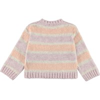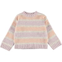 Gertina ist ein Strickpullover mit breiten Streifen in feinen Pastellfarben. Die Bluse hat eine weite Passform mit lockeren Ärmeln.