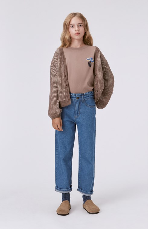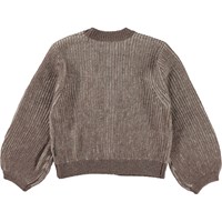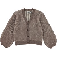 Graubrauner flauschiger Cardigan in Patentstrick. Dieser Cardigan ist aus einer superweichen Alpaka-Woll/Woll-Mischung gefertigt, hat einen V-Ausschnitt mit Rippbündchen, Knopfverschluss auf der Vorderseite, lange Ärmel mit Volumen und Rippbündchen, Rippbündchen an der Hüfte und eine reguläre Passform. Verwenden Sie ihn als zusätzliche Schicht an kälteren Tagen oder zusätzlich zu einem Kleid für einen süßen Look.