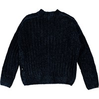 Gianna ist Molos neue Chenille-Cardigan in Dunkelblau. Der Cardigan hat einen V-Ausschnitt, eine kurze Passform und einen Knopfverschluss.