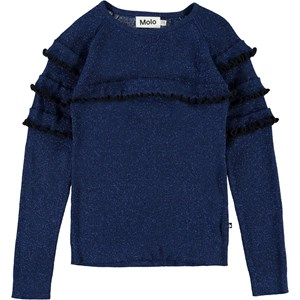 Gilah ist eine dunkelblaue langärmelige Glimmer-Bluse mit Rüschen.