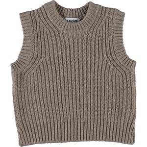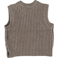 Grobstrickweste in Graubraun - Perfekt über Kleider, Hemden und Blusen, als extra coole Schicht für Ihr Outfit. Diese gestrickte Weste aus einer Woll/Acryl-Mischung hat einen Rundhalsausschnitt mit Rippbündchen, Rippbündchen an Armlöchern und Hüfte und eine normale Passform.