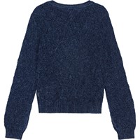 Navy Strickpullover aus Alpakawolle/Wollmischung mit zartem Lochmuster. Lange Ärmel mit Volumen, Rundhalsausschnitt mit Rippe, gerippte Bündchen an Ärmeln und Saum. Reguläre Passform. Perfekt für den täglichen Gebrauch.