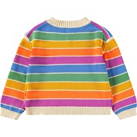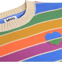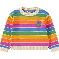 Mehrfarbiger gestreifter Strickpullover aus weicher Baumwolle mit einem kleinen Herz auf der Brust. Der Pullover hat eine übergroße Passform, mit gerippten Kanten an den Ärmeln, am Saum und am Hals, was einen schönen Abschluss ergibt.