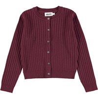 Gloria ist eine dunkelrote Strickjacke mit kurzer Passform. Die Strickjacke hat einen engen Verschluss auf der Vorderseite.