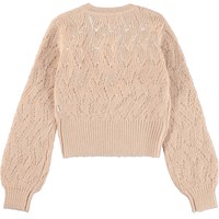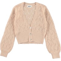 Glory ist eine rosafarbene Strickjacke mit schönem Lochmuster. Die Strickjacke hat einen V-Ausschnitt, eine kurze Passform und einen Knopfverschluss.