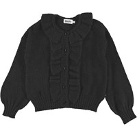 Gracie ist eine schwarze Strickjacke mit Glimmer und weiten Ärmeln. Der Knopfverschluss und Kragen haben eine schöne Rüschenkante. Gracie ist Teil von Molos Holiday-Kollektion und eignet sich hervorragend für festliche Tage und den Alltag.