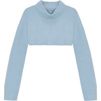 Dieser hellblaue Bolero ist aus einer weichen Wollmischung gefertigt. Er hat lange Ärmel, einen hohen Kragen und gerippte Abschlüsse an den Ärmeln, am Kragen und am unteren Saum der Bluse. Der Bolero ist sowohl warm als auch bequem zu tragen und verleiht Ihrer Garderobe etwas Einzigartiges.