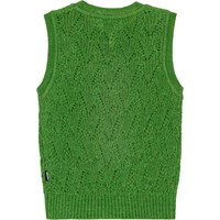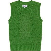 Grüne gestrickte Weste aus weicher Alpakawolle/Wollmischung. Perfekt zum Überziehen über Kleider, Hemden und Blusen für einen zusätzlichen coolen Touch zu deinem Outfit. Die Weste hat ein zartes Lochmuster und einen Rundhalsausschnitt mit Rippstrick. Auch an den Armlöchern und am Bund gibt es Rippstrick. Die Weste hat eine reguläre Passform.