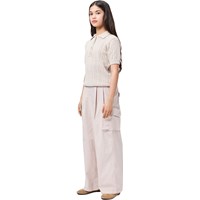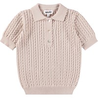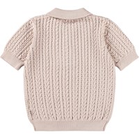 Beigefarbenes, gehäkeltes T-Shirt aus weicher, biologischer Baumwolle. Das T-Shirt hat ein dekoratives Lochmuster, einen klassischen Kragen und drei passende Knöpfe auf der Vorderseite. Gerippte Kanten an den Ärmeln und am unteren Rand verleihen ein schönes Finish sowie einen exklusiven Look.