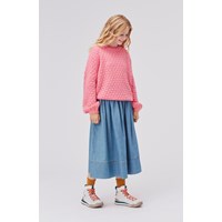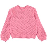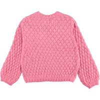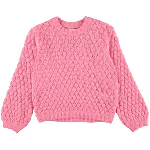 Gulia ist eine rosafarbener Strickpullover mit schönem Lochmuster. Die Ärmel der Bluse haben eine schöne Glockenform.