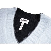 Übergroße und flauschige Weste aus einer Wollmischung. Die Weste ist vorne hellblau und hinten schwarz, sie hat einen V-Ausschnitt und gerippte Kanten am Ausschnitt, an den Ärmeln und am Saum.