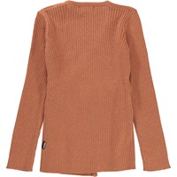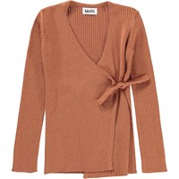 Gwyn ist eine brauner Strickpullover mit Wickeleffekt und seitlichem Bindeband. Kombinieren Sie die Bluse mit der passenden Hose.
