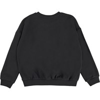 Maja ist ein schwarzes Sweatshirt mit gesticktem Pferdedruck auf der Vorderseite und dem Text 'Stay wild'. Das Sweatshirt hat einen gerippten Rand an Hals, Saum und Ärmelabschluss.