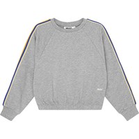 Graues meliertes Sweatshirt aus Öko-Baumwolle mit einer ungebürsteten Innenseite, was ihn angenehm und bequem zu tragen macht. Das Sweatshirt hat eine kurze Passform, Raglanärmel und ein gestreiftes Band entlang der Ärmel, inspiriert von den Olympischen Spielen. Der Sweatshirt kann mit passenden Hosen zu einem kompletten Set kombiniert werden.