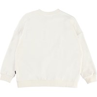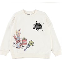 Mandy ist ein weißes Sweatshirt mit Aufdruck von Pinseln und Farbtuben sowie dem Text 'Art Club'. Das Sweatshirt hat eine übergroße Passform.