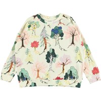 Mandy ist ein helles Sweatshirt mit Druck von fröhlichen und farbenfrohen Bäumen. Das Sweatshirt hat eine breite Passform und eine lockere Passform.