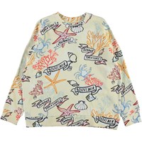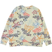 Mandy ist ein helles Sweat-Shirt mit Druck von Krabben, Konchylien und den Text 'souvenir'. Das Sweatshirt hat eine oversize Passform. Ecocert Greenlife, certifikationsnr. 197496