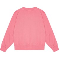 Rosa Sweatshirt aus Öko-Baumwolle mit Rundhalsausschnitt und geripptem Abschluss an Ausschnitt, Saum und Ärmeln. Das Sweatshirt hat eine übergroße Passform und eine schwarze Blumenstickerei mit Pailletten-Details, die einen eleganten Touch verleihen.