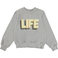 Marge ist ein grau meliertes Sweatshirt mit dem Aufdruck „Life“. Das Sweatshirt hat einen gerippten Rand am Hals, am Saum und am Ärmelende. Kombinieren Sie das Sweatshirt mit der passenden Hose.