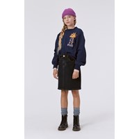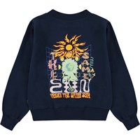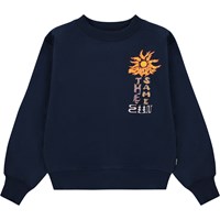 Dunkelblaues Sweatshirt mit Placement-Vorder- und Rückendruck. In diesem grafischen und farbenfrohen Druck ist der Planet Erde das Zentrum einer Sonnenblume, die auf jeder Seite von den verschiedenen Mondphasen umgeben ist, und die Sonne selbst darüber. Wenn Du genau hinsiehst, kannst Du sehen, dass sich die Flammen der Sonne in Buchstaben verwandeln, die die das Wort "Under" buchstabieren, und wenn Sie weiterlesen, erhalten Sie die fertige Nachricht. "Under the same Sun". Dieses Sweatshirt besteht aus 100% Baumwolle, hat einen Rundhalsausschnitt mit Rippbündchen, Rippbündchen an Ärmeln und Hüfte und eine normale Passform.