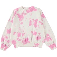 Marge ist ein Batik-Sweatshirt in Weiß und Rosa aus 100 % Öko-Baumwolle. Das Sweatshirt ist an Hals, Handgelenken und Hüften gerippt. Kombiniere es mit der passenden Jogginghose Anastasia für ein komplettes Outfit.Molos Batikdruck ist einzigartig und handgefertigt. Der Druck kann daher von Stil zu Stil variieren.