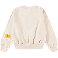 Dieses cremefarbenes Sweatshirt ist aus Öko-Baumwolle gefertigt und hat einen Rundhalsausschnitt sowie gerippte Kanten. Das Sweatshirt hat eine übergroße Passform, die ein entspanntes und bequemes Gefühl bietet. Auf der Vorderseite befinden sich gestickte, mehrfarbige Paillettenherzmotive mit lächelnden Gesichtern.