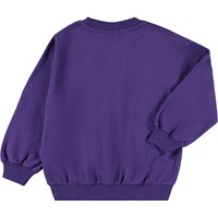 Lila Sweatshirt aus Öko-Baumwolle mit einer Stickerei von Weltraum. Das Sweatshirt hat einen Rundhalsausschnitt mit gerippten Kanten an den Ärmeln, am Hals und an der Taille sowie eine lockere Passform.