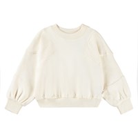Cremefarbenes Sweatshirt aus Öko-Baumwolle mit weichen Einsätzen an den Schultern und Ärmelkanten. Das Sweatshirt hat eine reguläre Passform und gerippte Abschlüsse.