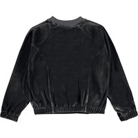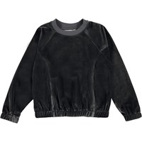Marion ist ein dunkelgraues Velours-Sweatshirt mit elastischem Saum und Ärmelabschluss. Kombinieren Sie die Bluse mit der passenden Hose.