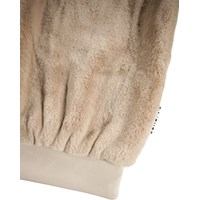 Flauschiger brauner Hoodie im Fake-Fur-Stil. Der Hoodie hat gerippte Kanten und eine lockere Passform.