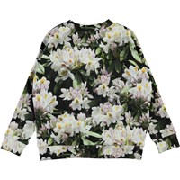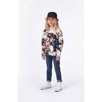 Maxi ist ein blumiges Sweatshirt, wo sich zwischen den Blumen zwei kleine Hunde verstecken. Ecocert Greenlife, certifikationsnr. 197496