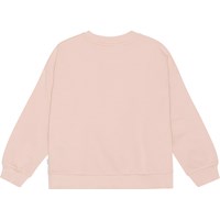 Puderfarbenes Sweatshirt aus Öko-Baumwolle. Das Sweatshirt hat einen Rundhalsausschnitt, Rippbündchen an Hals, Saum und Ärmeln sowie eine übergroße Passform. Das Sweatshirt hat einen Aufdruck von Pferden in Braun- und Weißtönen.
