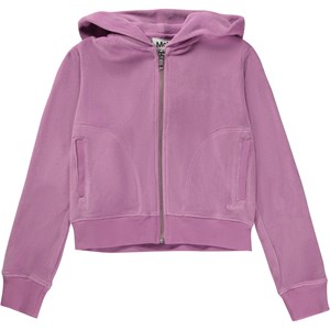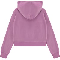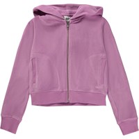 Lila Velours-Hoodie mit Reißverschluss. Dieser Hoodie aus einer Baumwoll/Polyester-Mischung verfügt über eine Kapuze, einen Frontreißverschluss, Seitentaschen, lange Ärmel mit geripptem Saum, einen gerippten Saum und eine normale Passform. Kombinieren Sie evt. diesen Hoodie mit der Hose Annie in der gleichen Farbe und Qualität für einen coolen Look.