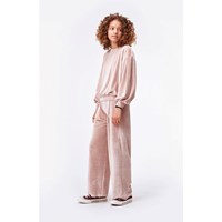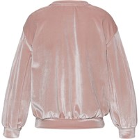 Moira ist ein rosa Samtpullover mit langen Ärmeln. Der Pullover hat einen leichte oversize Passform und fällt schön am Körper.