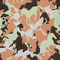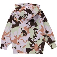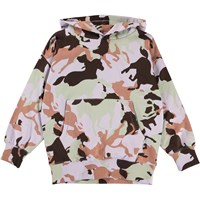 Moz ist ein Hoodie mit einem Pferdedruck, der wie Tarnung aussieht. Das Sweatshirt hat eine Kängurutasche auf der Vorderseite.