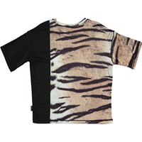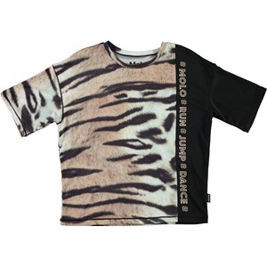 Odessa ist ein T-Shirt mit coolem Tigerdruck, einem einzelnen schwarzen Ärmel und Seite. Das T-Shirt hat eine bequeme und breite Passform. Odessa ist Teil der Sportkollektion von Molo, die Mode und Sport enger zusammenhält. Das T-Shirt ist bequem und besteht aus technischen Materialien, was bedeutet, dass es sowohl bei hoher Intensität als auch zum Entspannen verwendet werden kann. Die Sportkollektion von Molo basiert auf einer einzigartigen Hochleistungstechnologie namens HeiQ Smart Temp, die die natürliche Kühlung des Körpers unterstützt. Die Kühlfunktion wird aktiviert, wenn der Körper heiß und verschwitzt wird. Die Kühlfunktion aktiviert, wenn der Körper abgekühlt ist. HeiQ Smart Temp sorgt für optimalen Komfort und Leistung. Unabhängig getestet als hautverträglich.
