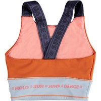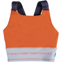 Oliva ist ein orangefarbenes Sporttop mit Color-Blocking. Das Oberteil hat breite blaue Träger mit Text, während die Unterseite des Oberteils hellblau mit orangefarbenen Nähten und orangefarbenem Sporttext ist. Das Top passt perfekt unter die Sportjacken von Molo. Olivia ist Teil der Sportkollektion von Molo, die dabei hilft, Mode und Sport enger miteinander zu verbinden. Das Oberteil ist bequem und besteht aus technischen Materialien, sodass es sowohl bei hoher Intensität als auch zum Entspannen verwendet werden kann. Die Sportkollektion von Molo wird mit einer einzigartigen Hochleistungstechnologie namens HeiQ Smart Temp hergestellt, die die natürliche Kühlung des Körpers unterstützt. Die Kühlfunktion wird aktiviert, wenn Ihnen heiß und verschwitzt ist. Die Kühlfunktion wird deaktiviert, wenn der Körper abgekühlt ist. HeiQ Smart Temp sorgt für optimalen Komfort und Leistung. Unabhängig als sicher für die Haut getestet. Die Technologie ist Öko-Tex zertifiziert.