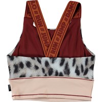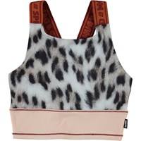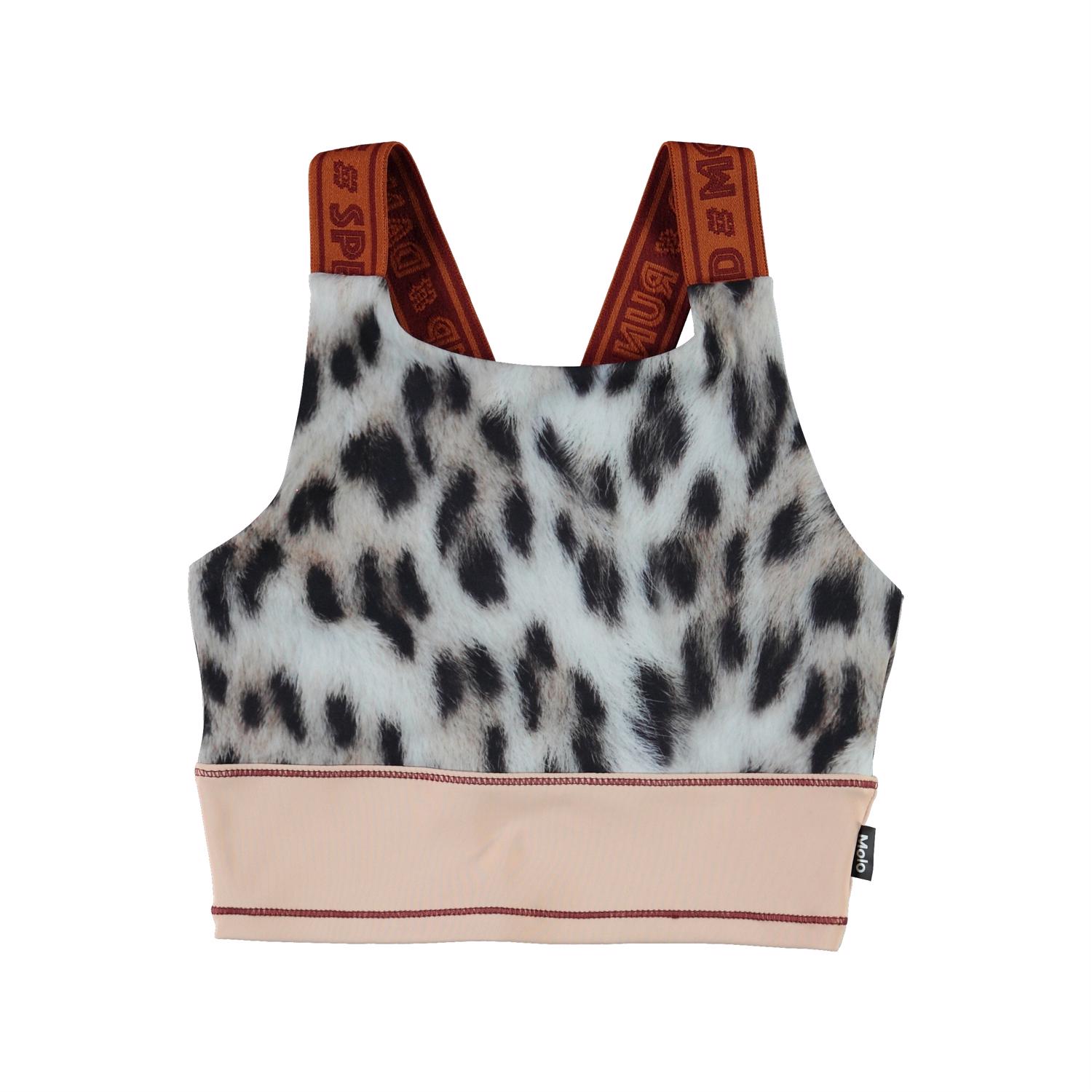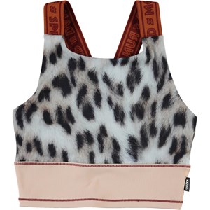 Oliva ist ein Sporttop mit einem Schneeleopardenmuster und einem zarten rosa Hintergrund. Das Top hat breite braune Träger mit Molo-Textdruck. Das Top passt perfekt zu Molos Sportjacken. Olivia ist Teil der Molo-Sportkollektion, die Mode und Sport enger zusammenhält. Das Top ist bequem und besteht aus technischen Materialien. Dies bedeutet, dass es sowohl bei hoher Intensität als auch zum Entspannen verwendet werden kann. Die Sportkollektion von Molo basiert auf einer einzigartigen Hochleistungstechnologie namens HeiQ Smart Temp, die die natürliche Kühlung des Körpers unterstützt. Die Kühlfunktion wird aktiviert, wenn der Körper heiß und verschwitzt wird. Die Kühlfunktion aktiviert, wenn der Körper abgekühlt ist. HeiQ Smart Temp sorgt für optimalen Komfort und Leistung. Unabhängig getestet als hautsicher.