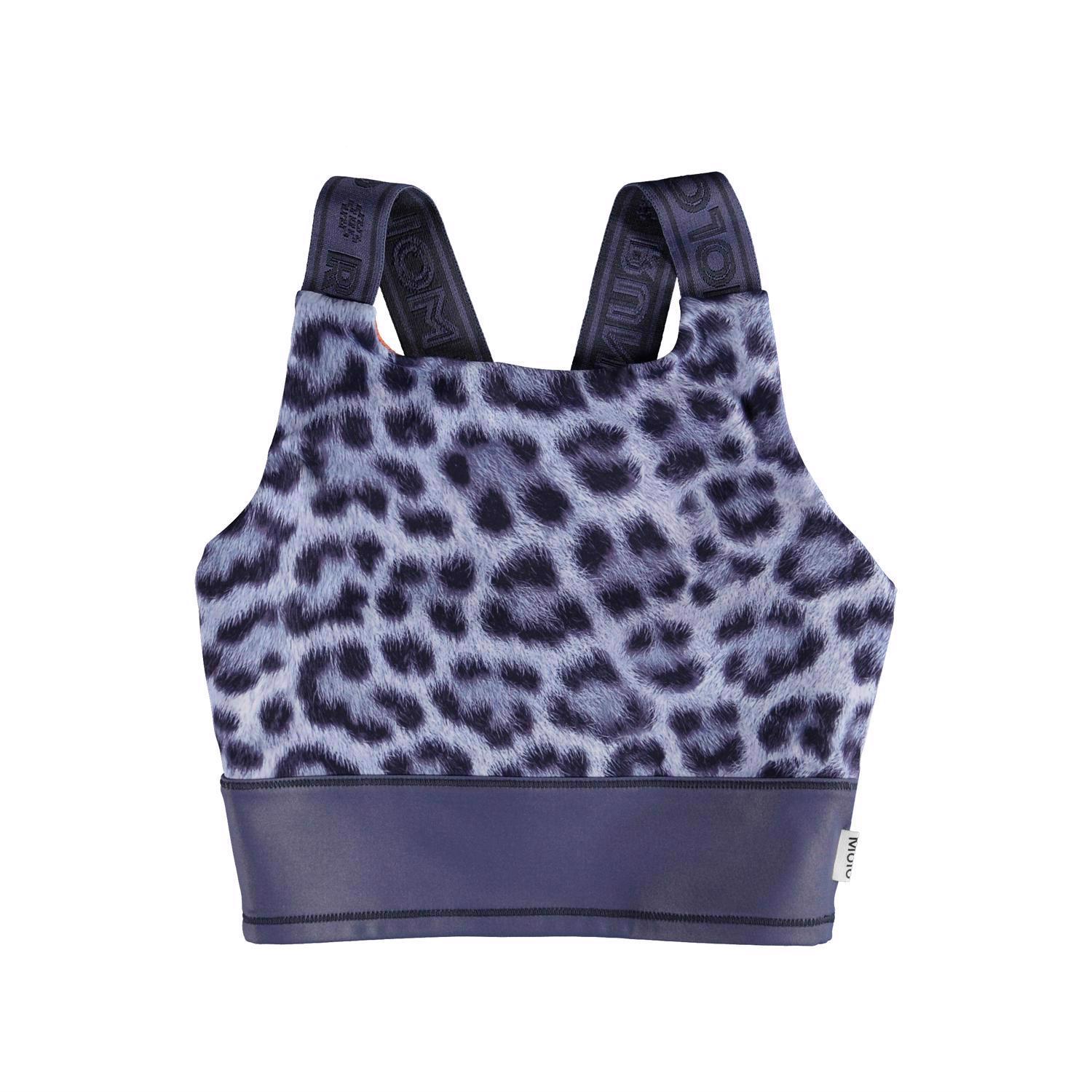 Oliva ist ein Sporttop in Blau mit Leopardenmuster. Das Oberteil hat breite blaue Träger mit Text, während die Unterseite des Oberteils in der gleichen blauen Farbe ist. Das Top passt perfekt unter die Sportjacken von Molo. Olivia ist Teil der Sportkollektion von Molo, die dabei hilft, Mode und Sport enger miteinander zu verbinden. Das Oberteil ist bequem und besteht aus technischen Materialien, sodass es sowohl bei hoher Intensität als auch zum Entspannen verwendet werden kann. Die Sportkollektion von Molo wird mit einer einzigartigen Hochleistungstechnologie namens HeiQ Smart Temp hergestellt, die die natürliche Kühlung des Körpers unterstützt. Die Kühlfunktion wird aktiviert, wenn Ihnen heiß und verschwitzt ist. Die Kühlfunktion wird deaktiviert, wenn der Körper abgekühlt ist. HeiQ Smart Temp sorgt für optimalen Komfort und Leistung. Unabhängig als sicher für die Haut getestet. Die Technologie ist Öko-Tex zertifiziert.