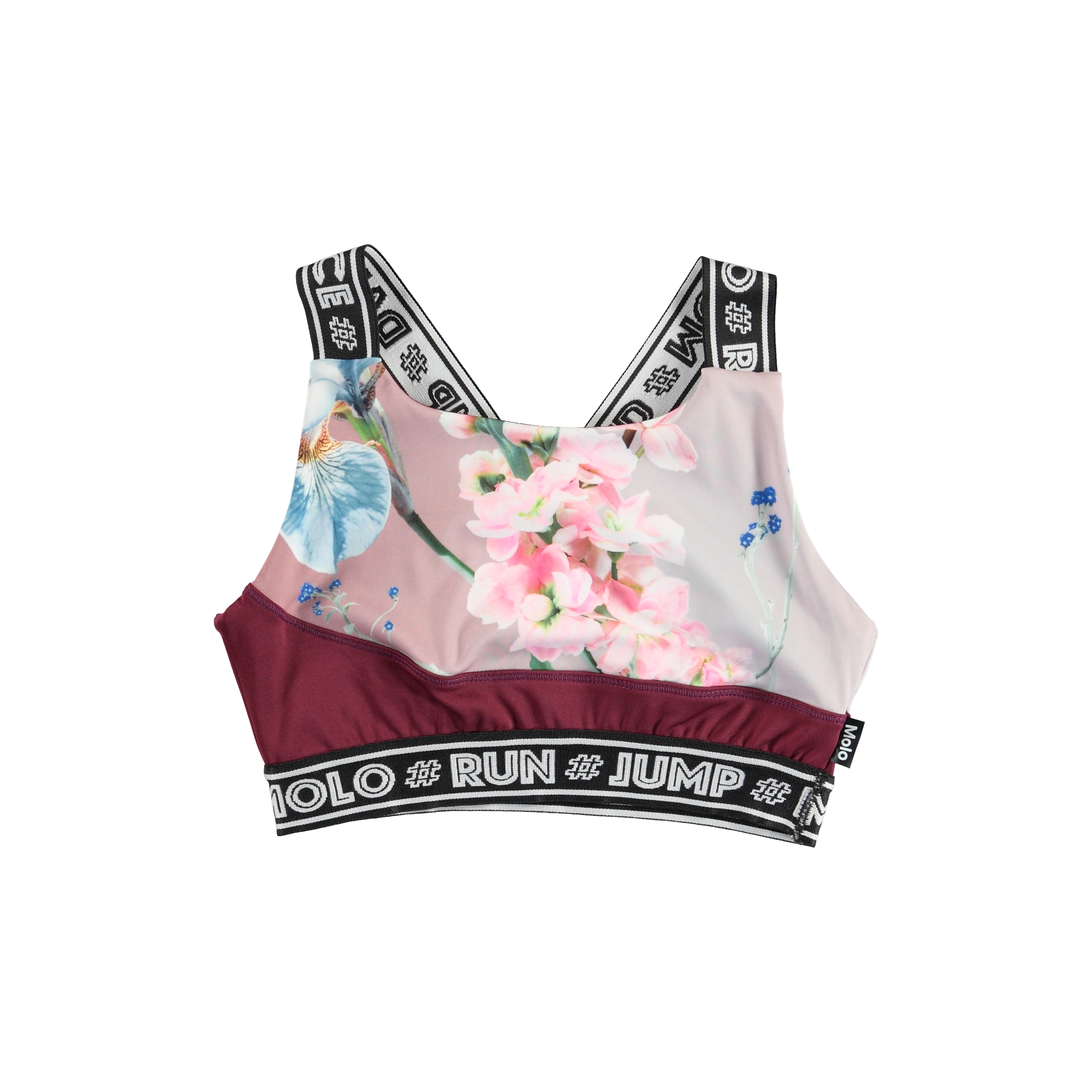 Olivia ist ein kurzes Top mit Blumen-Druck und breiten Trägern mit Textdruck. Olivia ist Teil der Molo-Sportkollektion, die dazu beiträgt, Mode und Sport enger zusammenzubringen. Das Oberteil ist bequem und besteht aus technischen Materialien, die es ermöglichen, es sowohl bei hoher Intensität als auch beim Entspannen zu verwenden. Die Sportkollektion von Molo ist auf einer einzigartigen High-Performance-Technologie namens HeiQ Smart Temp basiert, die die natürliche Kühlung des Körpers unterstützt. Die Kühlfunktion wird aktiviert, wenn mann heiß und verschwitzt ist. Die Kühlfunktion wird deaktiviert, wenn der Körper abgekühlt ist. HeiQ Smart Temp sorgt für optimalen Komfort und Leistung. Unabhängig getestet als hautverträglich.