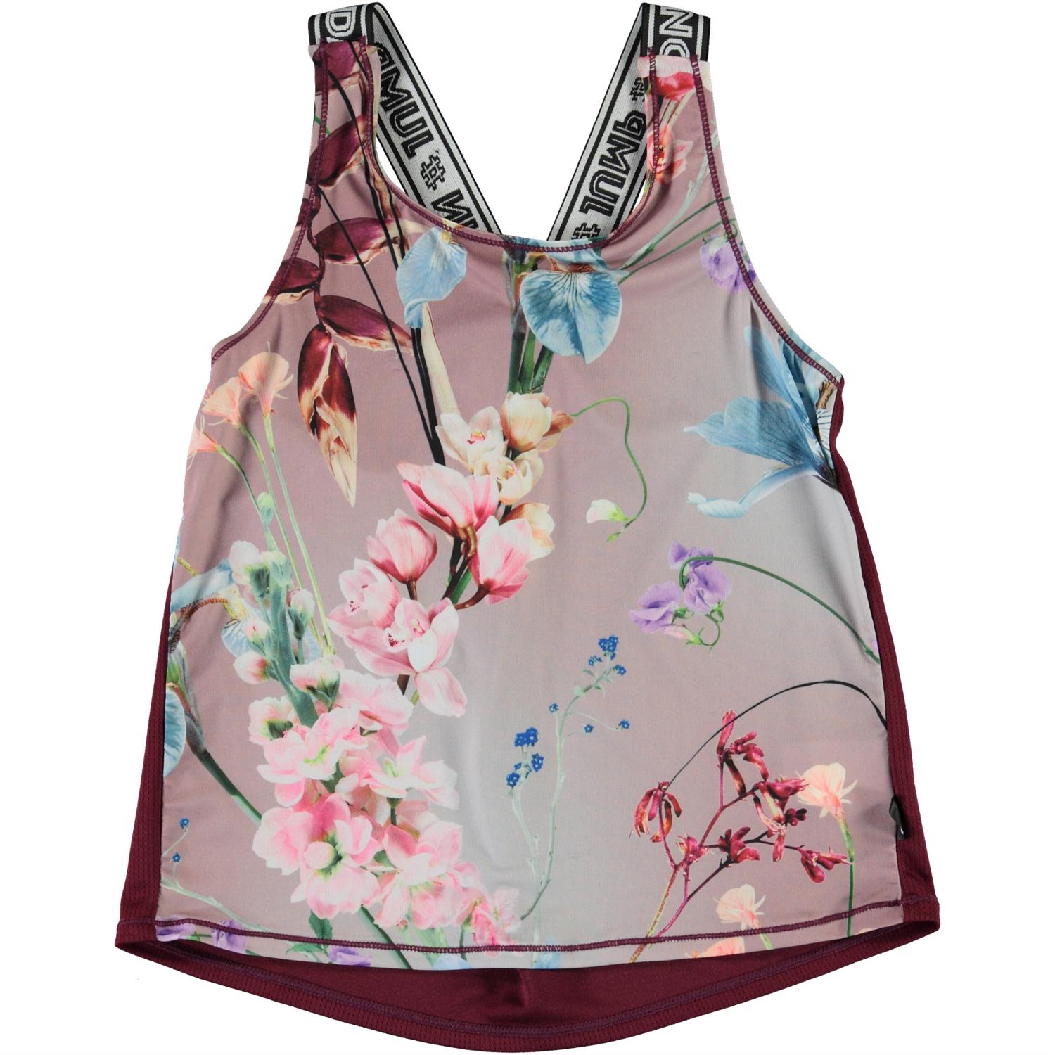 Oriana ist ein Top mit Blumen-Druck und ein burgunderfarbenen Rücken sowie breite Träger, auf denen sich Text befindet. Das Top ist Teil der neuen Sportkollektion von Molo, die Mode und Sport enger miteinander verbindet. Das Oberteil ist bequem und besteht aus technischen Materialien, die es ermöglichen, es sowohl bei hoher Intensität als auch beim Entspannen zu verwenden. Die Sportkollektion von Molo ist auf einer einzigartigen High-Performance-Technologie namens HeiQ Smart Temp basiert, die die natürliche Kühlung des Körpers unterstützt. Die Kühlfunktion wird aktiviert, wenn mann heiß und verschwitzt ist. Die Kühlfunktion wird deaktiviert, wenn der Körper abgekühlt ist. HeiQ Smart Temp sorgt für optimalen Komfort und Leistung. Unabhängig getestet als hautverträglich.